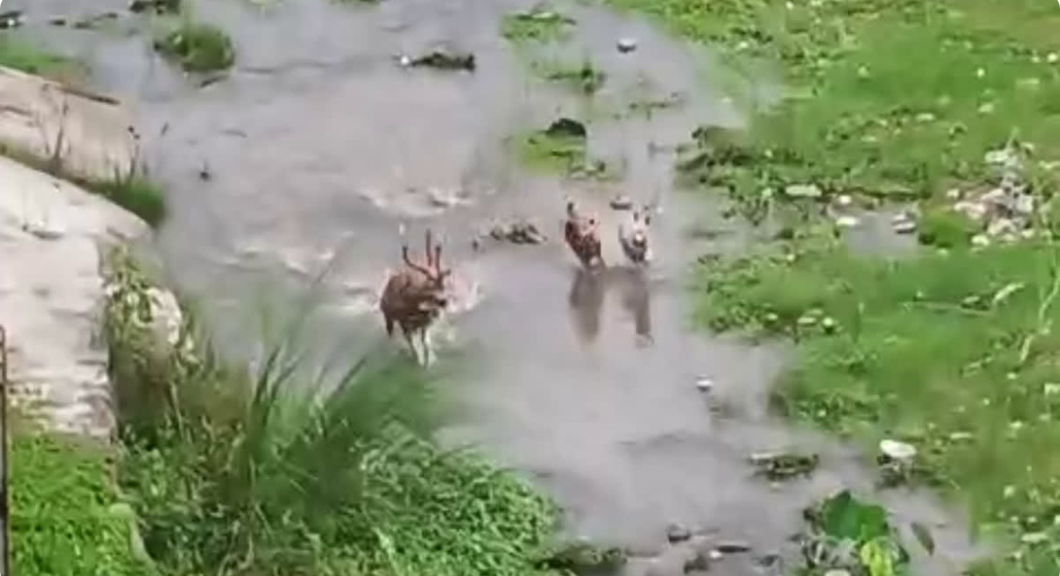 हिरण पर हमला करते दिखा कुत्तों का झुंड: दरअसल, जैसे ही चीतल (स्पॉटेड डियर) कोसी नदी पार करने की कोशिश करता है. वैसे ही वहां मौजूद कुछ आवारा कुत्ते उस पर टूट पड़ते हैं और उसे काटने को लेकर दौड़ लगाते हैं. कुत्तों का झुंड चीतल पर हमला कर देता है, जिससे वो खुद को बचाने के लिए नदी के उथले हिस्से में भागने की कोशिश करता है. जहां चीतल अपनी जान बचाने की जद्दोजहद कर दिया.