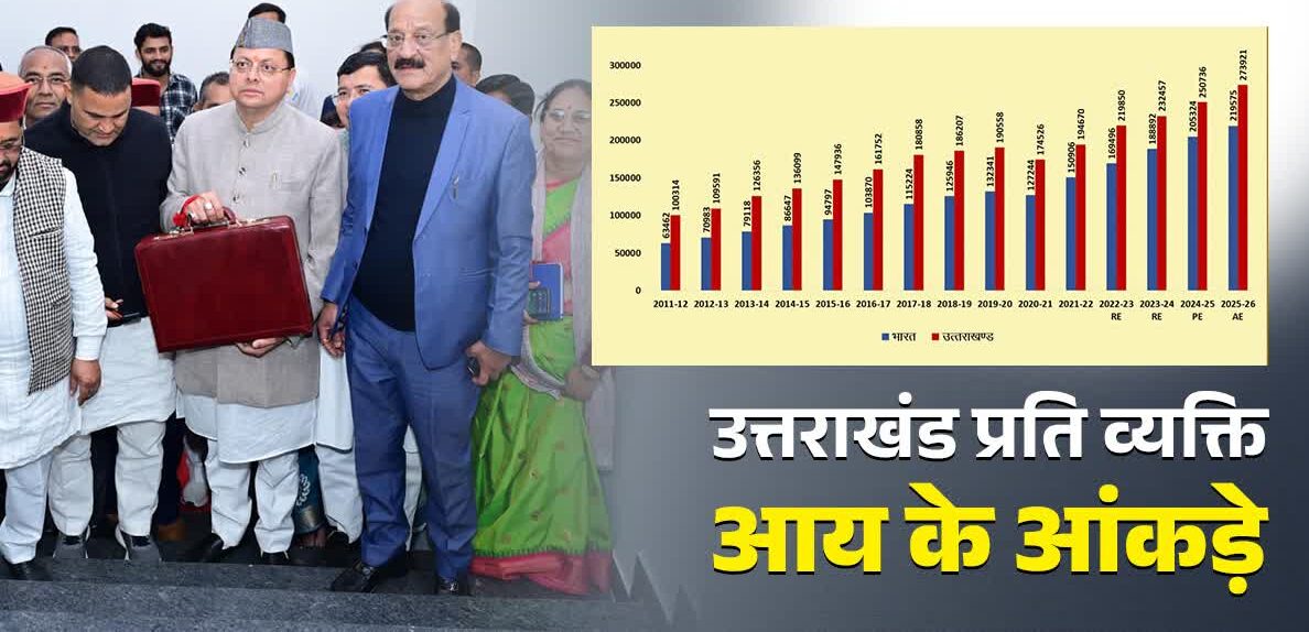 सरकार द्वारा प्रस्तुत संशोधित अनुमान के अनुसार वर्ष 2022-23 में देश की प्रति व्यक्ति आय लगभग 1,69,496 रुपये रही, जबकि उत्तराखंड में यह 2,19,850 रुपये दर्ज की गई। वहीं 2023-24 के संशोधित अनुमान के अनुसार राष्ट्रीय औसत करीब 1,88,892 रुपये और राज्य की प्रति व्यक्ति आय 2,32,457 रुपये बताई गई है।