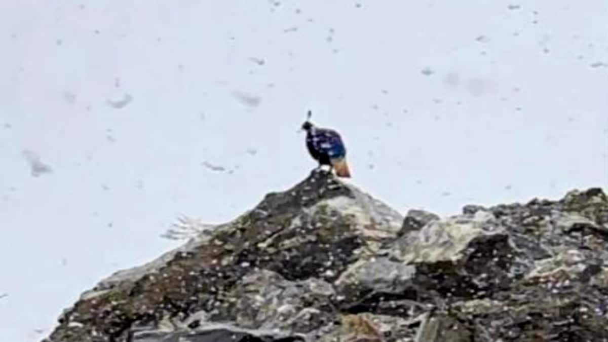 बर्फबारी के बीच ऊंचाई पर दिखा मोनाल